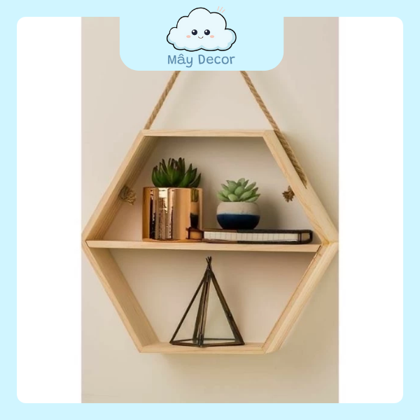 Nếu bạn đang tìm kiếm một món đồ vừa trang trí đẹp, vừa tiện dụng, lại tiết kiệm diện tích, thì kệ gỗ treo tường lục giác 2 ngăn dây thừng decor là lựa chọn hoàn hảo. Sản phẩm giúp không gian sống trở nên gọn gàng, ấm cúng và mang đậm dấu ấn cá nhân.